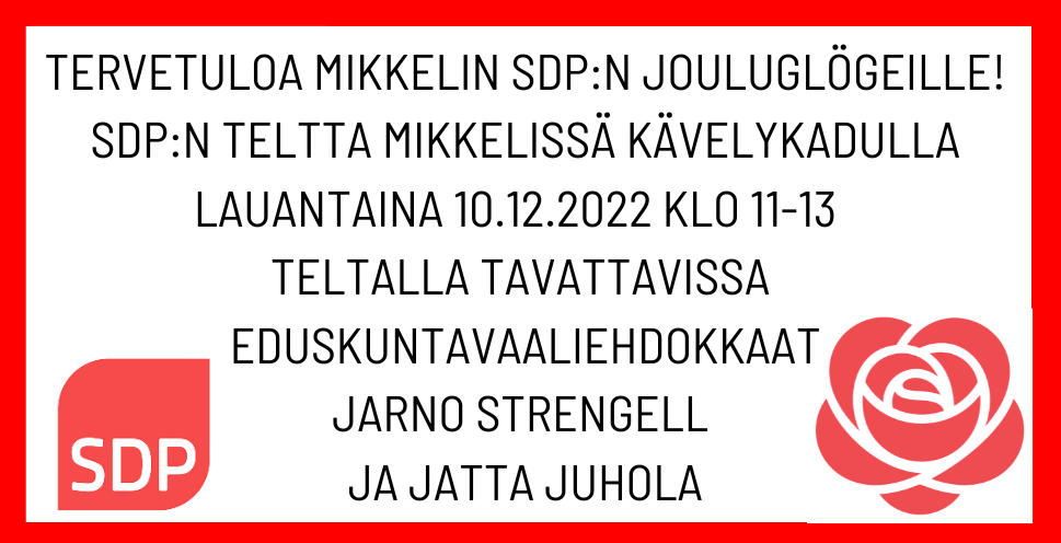 Samalla voi tulla keskustelemaan eduskuntavaalihdokkaiden Jarno Strengelin ja Jatta Juholan kanssa!